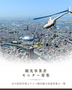 大阪府では「空飛ぶクルマ」を観光分野に活用するビジョンを掲げ、空飛ぶクルマの観光魅力促進事業として、弊社を含む「オリックス・Soracle・日本航空・AirX・JTB 共同企業体」が採択を受けて、現在観光魅力促進調査を実施中です。