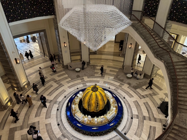 まずは、カジノ以外の見どころを紹介しよう。「パラダイスシティ」では、著名なアーティストの作品がリゾート全体に溢れるように存在している。歩いているとあちこちでアート作品に出会える。よほどカジノで儲かるのか、その数は3000点にものぼるというが、中でも抜群の存在感を放つのは日本人アーティスト、草間彌生氏の“金のかぼちゃ”だ。ホテルの中心にあり、この周辺で仮面舞踏会のショーも開催される。