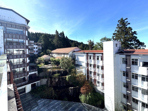 特筆すべきは7階の展望台。阿里山の美しい景色が眼前に迫り、西向きで夕陽の名所でもある。部屋は2つの館でかなり異なり、歴史的な本館は当然クラシックで、狭いしシャワーしかないが落ち着いた装いである。モダンな新館は、暖炉ストーブ(フェイク)がアクセントになり、4つのシングルが並ぶファミリールームなども備え、バスタブもある。レストランは1階のブッフェのみで、ホテルの値段の割にさほど豪華ではないが、標高2000mの山の上でこれを頂けると考えれば悪くない。Wi-Fiもサクサクと繋がり、ありがたい(阿里山は、山のどこでも完全に携帯が繋がる)。また、この山の上で、まさかのウォシュレット!実に快適な山岳リゾートだ。