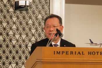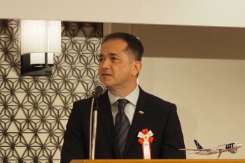 乾杯のあいさつに立った成田国際空港取締役営業部門長の神﨑俊明氏も「今後ともLOがポーランドと日本、ひいては欧州とアジアを結ぶ重要な役割として、さらに発展していくことを祈念する」と挨拶した。
