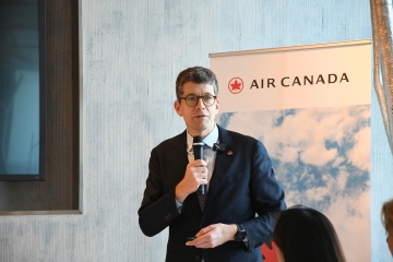 エア・カナダは18日、路線計画・グローバルセールス担当副社長アレクサンドル・ルフェーブル氏の来日に伴いイベントを開催し、新成長戦略を説明した。2028年までに売上高300億ドル達成を目標に掲げ、日本市場を中核の一つとして拡大を進める方針を示した。