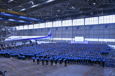 ANAグループは4月1日、羽田空港の格納庫で入社式を開催し、約2800人の新入社員を迎えた。安全を経営の基盤とする姿勢を改めて示すとともに、2030年に向けた成長投資と変革を担う人材への期待を強調した。