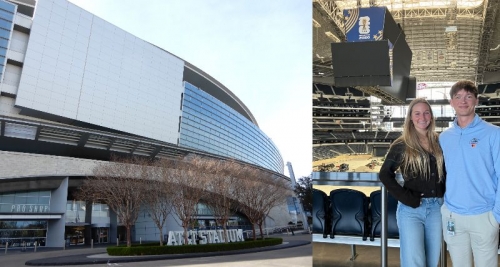 同スタジアムはプロアメリカンフットボールリーグ(NFL)の名門「ダラス・カウボーイズ」の本拠地として知られる。普段はNFLやコンサートなど様々なイベントに対応する人工芝が用いられているが、FIFA2026に向けて天然芝を設置するために土入れをしていた。アーチが支える構造で観戦を邪魔する柱がない。
