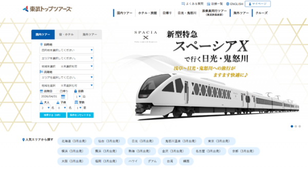 東武トップツアーズは、2026年4月以降出発の旅行商品の発売を開始するとともに、旅行予約サイトを全面リニューアルした。商品ラインナップの拡充とデジタル機能強化、グループ共通ポイントの導入により、春から夏にかけた旅行需要の取り込みを図る。