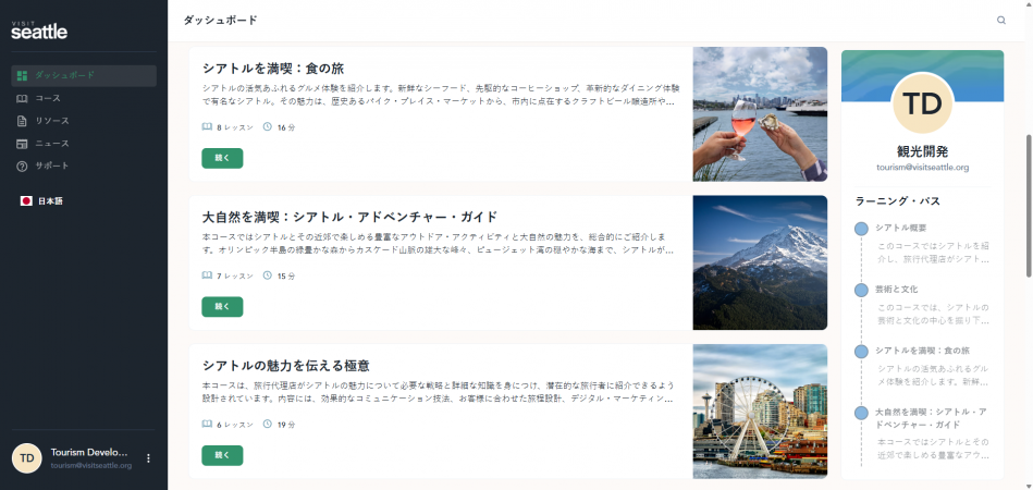 同プログラムは無料の自習型トレーニングで、シアトルの観光資源や文化、自然の魅力を幅広く学べる内容となっている。旅行会社が顧客に対してシアトルの魅力をより具体的に伝え、旅行提案の質を高めることを目的として設計されている。