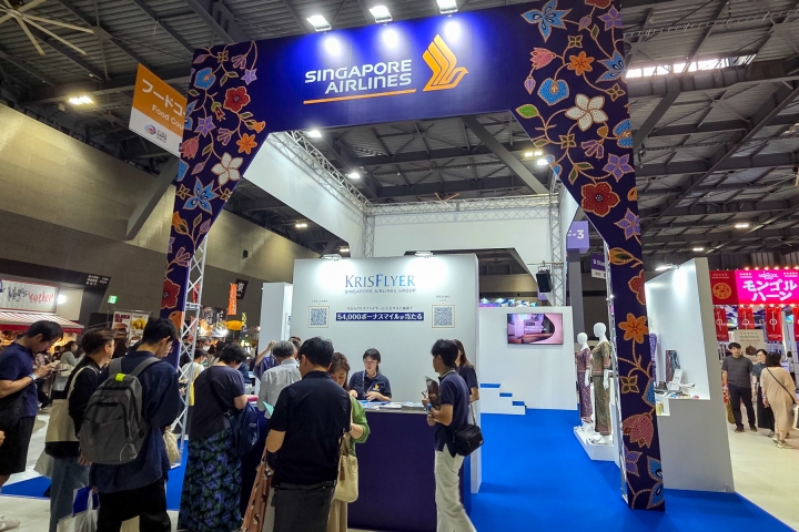 シンガポール航空のブースではユニフォームや機内食、アメニティのサンプルなどを展示。クイズ大会も開催した