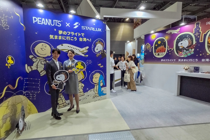 スターラックス航空は展開中のキャンペーン「PEANUTS × STARLUX」をイメージしたブース