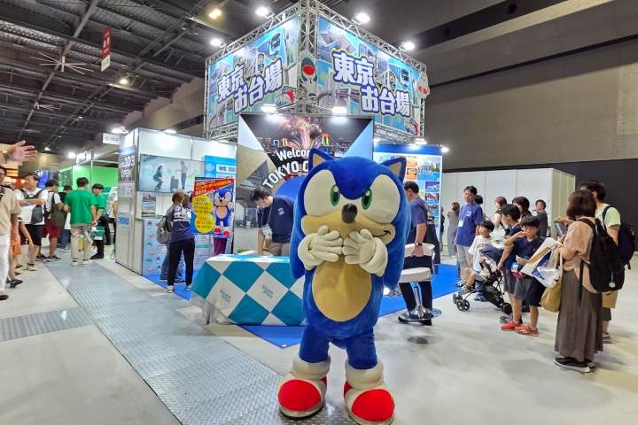 東京 お台場のブースにでは、東京ジョイポリスからSEGAの公式キャラクター「ソニック・ザ・ヘッジホッグ」が登場