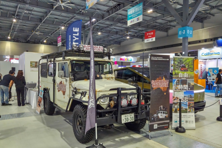 ドライブツーリズムのエリアでは、北海道でラングラー等をレンタルしてロードトリップが楽しめる「サムライクルーザー」が出展