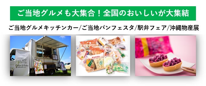ご当地の食材や人気メニューを揃えたキッチンカーや、旅グルメの代名詞ともいえる駅弁も!ガッツリ飯からカフェメニューまでラインアップも充実です。また、全国の有名百貨店や商業施設で開催実績のある「ご当地パンフェスタ」も登場。