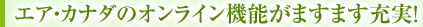 エア・カナダのカナダ本国サイト“aircanada.com”(www.aircanada.com/en/home.html)からは、オンラインでチェックインすることが可能となりました。国際線は出発の2時間前まで受付が可能です。手続きは簡単!アエロプラン会員番号、クレジットカード番号、予約番号のいずれかをご入力し、搭乗券をプリントするだけ。ご希望の座席を選択することもできます。場所や時間を問わず、空港到着前に手続きを済ませることができるので、ご出発までの時間を有効にご活用いただくことが可能となりました。
