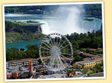 雄大な滝を上空から楽しむ方法も様々です。たとえば滝のすぐ近くに立つ「スカイロンタワー」では、地上158mの展望台からふたつの滝を眺められるほか、回転レストランで周囲360度の眺望とともに食事を楽しむことができます。また滝の上空の遊覧飛行ができる「ナイアガラ・ヘリコプター」、さらに最近登場した観覧車「スカイホイール」では、滝の上空53mまで上昇して、ゆっくりと滝を眺めることができます。