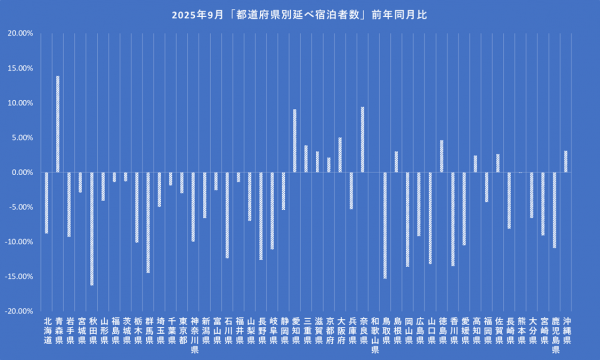 10月の延べ宿泊者数は6025万人泊、訪日8.5%増で全体押し上げ