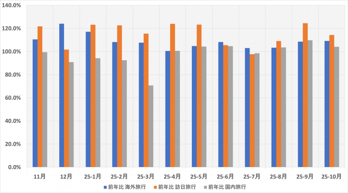 主要旅行業者10月、全分野で前年超え 海外・訪日が大幅伸長