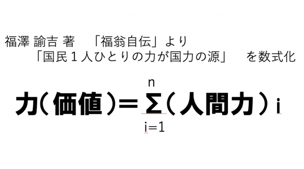 福澤諭吉の著作である福翁自伝にこの国力についての言及がある。「国民1人ひとりが力をもってこそ真の先進国」という「独立自尊」の件だ。この言葉に最初に出会ったのは浪人時代だった。これこそ自分が将来の組織・社会で目指すべき指針だと感動した。100年以上も前の偉人の言葉だが、実に示唆に富んだ活きた言葉ではないだろうか。