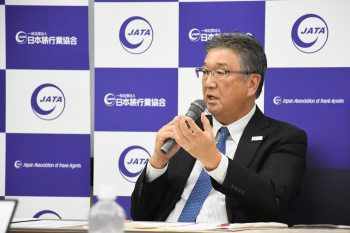 訪日インバウンドについては、東京、大阪、京都に集中する需要構造を改め、地方分散を進めることが喫緊の課題とした。新たな周遊ルートの開発や高付加価値旅行、観光DXの推進、地方空港の国際化を官民連携で進める必要性を訴えた。JATA会員に占めるインバウンド取扱比率は約6%にとどまっており、今後は会員各社が事業の柱の一つとして取り組む余地が大きいとした。
