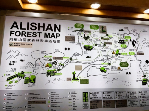 さらに進めば、「老老」街まであり、100年昔の老街は日本のノスタルジックな看板が掲げられ懐かしかった。台湾で懐かしさを感じるのが少しおかしい。山道をさらに車で登り進むと標高2100mの阿里山観光センター(駐車場)まで行くことが可能。ここより上は、車は規制されていて、鉄道、徒歩、宿泊者専用シャトルバスに乗り換える必要がある。初日は、夜の18時すぎに到着したが、大変な賑わいであった。阿里山はご来光観光としても有名なので、皆、早朝まで駐車場で仮眠をとり、日の出の時間にあわせて運行される鉄道に乗るらしい。