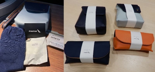 座った状態で手荷物を前に置けるぐらい足元には余裕があり、ボトル入りの水、アメニティポーチ、バング&オルフセンのノイズキャセリングヘッドホンなどがセットされた座席横の収納も余裕がある。収納横に座席のリクライニングコントロール画面があって操作しやすい。テーブルはモニター画面下からさっと引き出せる。反対街の肘掛けにもちょっとしたものを置ける。
