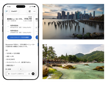 同アプリは、世界約1200の航空会社や旅行会社、ホテルサイトのデータを基に最適な選択肢を提示する仕組みで、ユーザーは「12月にニューヨークへの最安フライトを探して」といった自然な指示を入力するだけで、視覚的に整理された検索結果を取得できる。日程や出発地の変更も会話の中で簡単に行える点が特徴となる。