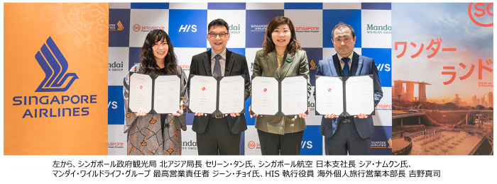 HISはシンガポール政府観光局、シンガポール航空、マンダイ・ワイルドライフ・グループと連携し、日本発シンガポール向けレジャー需要の創出を目的とした協力覚書を締結した。外交関係樹立60周年を契機に、共同プロモーションと商品造成を強化し、送客拡大を図る。
