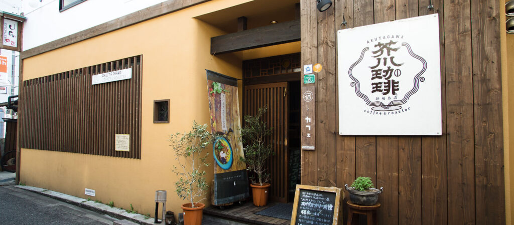 ゲストハウス由苑は、グランキューブ大阪から徒歩約10分の距離にある、明治時代にできた元料亭の建物をフルリノベーションした複合宿泊施設です。2階が宿になっており、1階には珈琲とスパイスカレーを自慢とするカフェが併設されています。