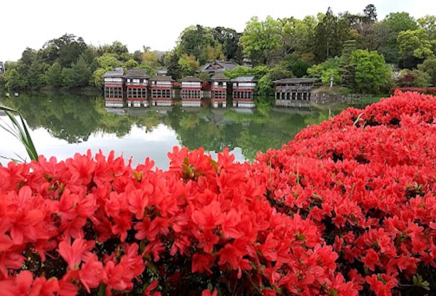 特に春を迎えると、八条ヶ池の周囲や正面大鳥居をくぐった先の参道の両脇に、真っ赤なキリシマツツジが咲き誇り、長岡天満宮ならではの絶景が楽しめます。